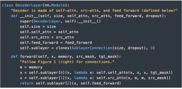 除了每个编码器层中的两个子层之外,解码器还插入了第三种子层对编码器栈的输出实行“多头”的Attention。 与编码器类似,我们在每个子层两端使用残差连接进行短路,然后进行层的规范化处理。