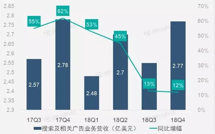 搜狐第四季度搜索及搜索相关广告业务营收为2.77亿美元,较2017年同期增长12%,较上一季度增长8%。