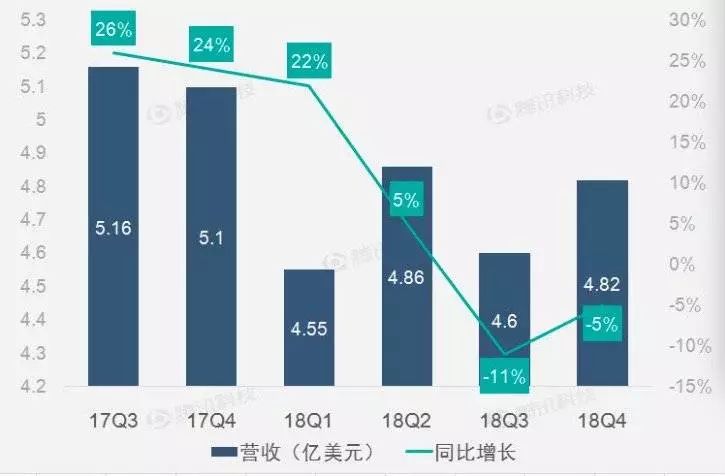 搜狐第四季度总营收为4.82亿美元,较去年同期下滑5%,较上一季度上涨5%。搜狐第四季度总营收的同比下滑,主要受品牌广告和网络游戏营收同比下滑的影响。