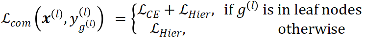 为了进一步加强网络对于细粒度叶子节点的区分能力,我们进一步结合多类交叉熵损失函数,形成最后的复合损失函数优化整个网络:
