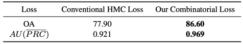 在表 3 中我们对比了复合损失函数与传统的层级分类损失函数对比的结果: