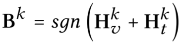 值得一提的是,为了更好地弥合不同模态之间的语义鸿沟,并提高跨模态哈希的性能,在训练阶段,对于两种模态的数据,作者采用了统一的哈希码进行表示,公式如下: