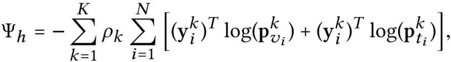 为了全面编码类别层次结构中的语义相似信息,使获得的层次哈希码对于对应层次的类别更具有判别性。作者为两种模态分别引入了 K 个多分类网络。第 k 层分类任务以第 k 层哈希表示作为输入,第 k 层的类别标签作为真实标签。以图片模态为例,具体公式如下: