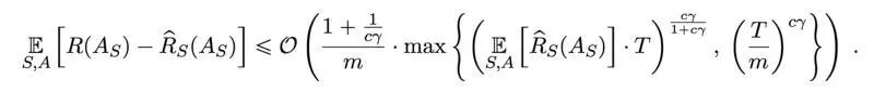 其中是训练集的大小,是训练步数,表示初始点曲率如何影响稳定性。这就引出了至少两个结论。首先,围绕初始点(initialization point)的目标函数的曲率具有决定性的影响。从更为平缓有较低风险区域的一个点开始,应该会产生更高的稳定性,即更快的泛化。在实践中选择初始化参数时,这会是一个很好的预筛选策略。其次,考虑到全面通过,即,我们将界限简化为。也就有了更大的训练集,而更小的泛化能力降低。