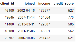 clients:关于一家信用社客户的基本信息。每位客户只对应表中的一行数据。