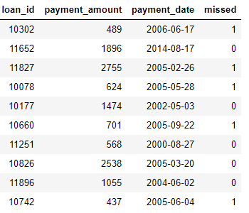 payments:还贷金额。每笔支付只对应一行数据,但每项贷款可能分多次支付。