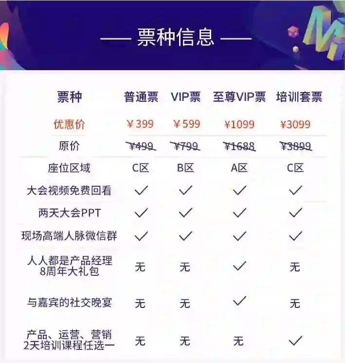 免费票为起点高级会员(了解起点高级会员请戳:http://996.pm/MQBPa),以及人人都是产品经理专栏作家专属福利,名额有限,先到先得哦~审核通过后,可获得价值499元普通区门票一张;