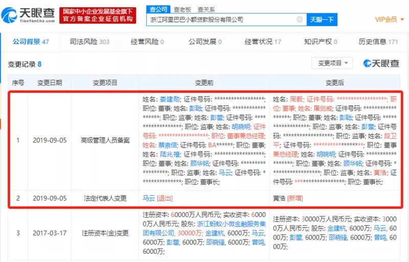 9. 马云卸任浙江阿里巴巴小额贷款股份有限公司法定代表人、董事长