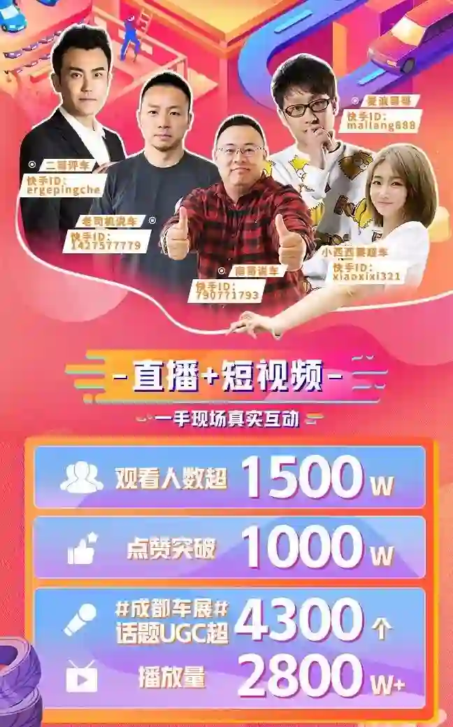2. 快手公布成都车展数据:直播观看人数超1500万