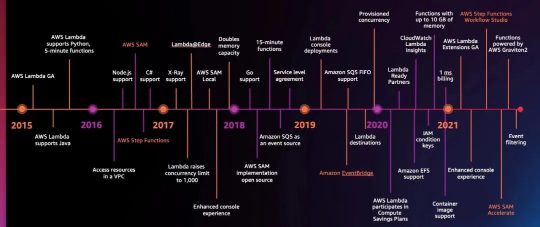 在发布至今这七年里,Amazon Serverless 服务各方面都在不断改进: