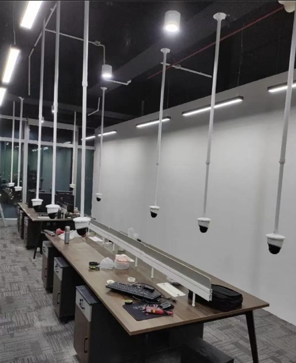 网传深圳一公司办公室内,每个工位上方都安装有监控摄像头。从该办公室所在的写字楼租赁处了解到,此为一家游戏研发公司,安装摄像头的目的是防止游戏泄密。(极目新闻)