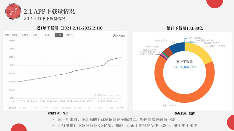 例如,在对产品生命周期的分析中,小A同学根据酷传和百度指数的数据,判断小红书的生命周期为成熟期。有理有据,分析客观,结论正确。