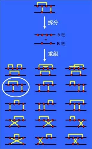 (仅列出一条A链和一条B链可能的15种氧化重组模式)