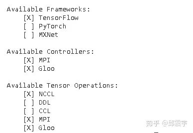 那么怎么判断你的horovod是否正确链接了NCCL呢?答案是使用horovodrun --check-build命令,如果安装好的话,应该会显示以下结果: