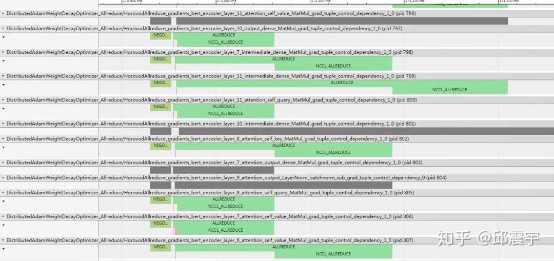 跟旧代码相比,其实改动并不是很多,除了增加了shard操作外,还增加了prefetch,每个step会预先将一些数据预加载,使得整个流程中,设备之间等待的时间尽可能缩短。当然,这个buffer_size也是一个需要调参的点,设置太大的话,反而会影响正常的数据流处理,设置太小的话,对性能的提升不会太明显,一般可以先试试设置成batch_size。值得注意的是,这里用到了两次shuffle,个人觉得这里可以只保留一次shuffle,因为我在之前数据预处理的时候已经做过两次全量的shuffle了,因此这里的随机性在一定程度上是可以保证的。
