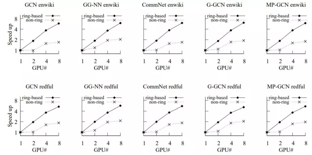 上的情况一样,高效使用 GPU 对 GNN 的性能至关重要,而且由于处理大型图结构的额外挑战,对 GPU 的使用就显得更为关键了。为了实现超越 GPU 物理限制的可扩展性,NGra 显式地将图结构划分(顶点和边数据)成块,将一个在 SAGA-NN 模型中表达的 GNN 算法转成了具有块粒度 operator 的数据流图,通过该数据流图,作者可以在单个或多个 GPU 上进行基于块的并行流处理。
