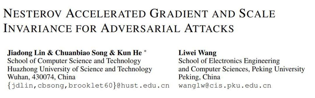 在该论文中,作者从将对抗样本生成视为优化过程的角度,提出了两种新的方法来提高对抗样本的可迁移性,即 Nesterov 迭代快速梯度符号方法(NI-FGSM)和尺度不变攻击方法(SIM)。