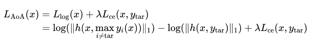 经实验可知,对数边界损失是迁移攻击效果最好的,因此该损失函数被选为目标函数的中的一项。