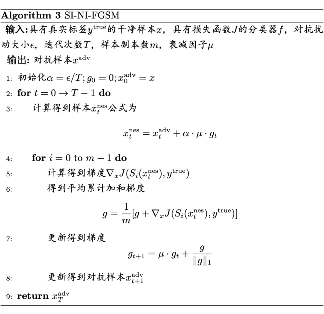 NI-FGSM 旨在将 Nesterov 加速梯度适应于迭代攻击中,从而有效地预见并提高对抗样本的可迁移性。SIM 方法是基于对深度学习模型的尺度不变特性,利用它来优化输入图像尺度副本上的对抗扰动,以避免对白盒模型的过拟合被攻击并产生更多可转移的对抗样本。
