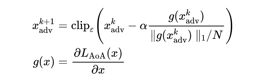 x_adv = torch.clamp(x_adv + alpha * torch.sign(g_t), 0 ,1).detach()