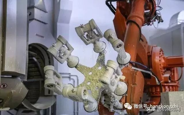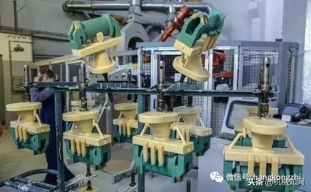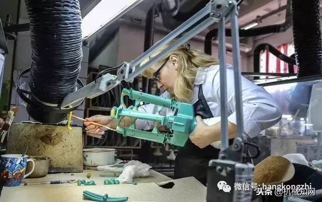 用机械手在陶土液中旋转,使其均匀包裹住模型的任何部位。