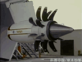 ▲桨扇发动机的螺旋桨直接装在发动机中心的主轴上。因此螺旋桨转速与发动机转速相同,噪音也十分巨大。