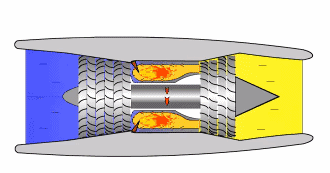 涡扇发动机分为内涵道和外涵道,内涵道原理与单纯的涡喷发动机无异,称为核心机。核心机驱动前方一个大风扇,推动气流向后,再加上外部整流罩行程外涵道。