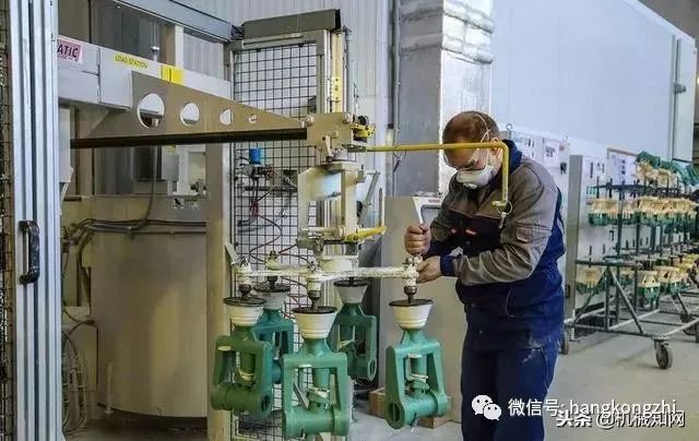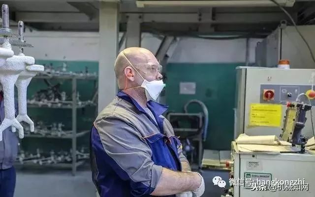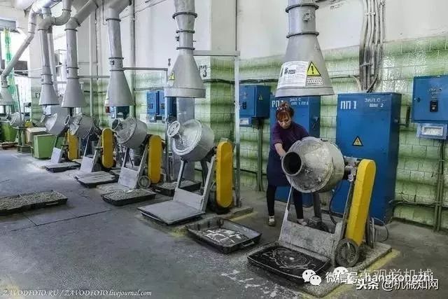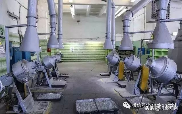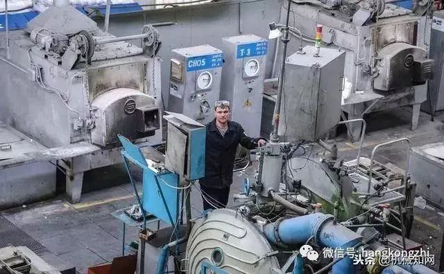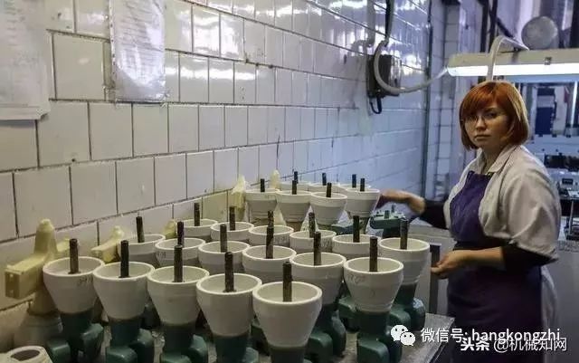 这里正在加工瓷土,将瓷土打碎,制作涡轮叶片的内芯。