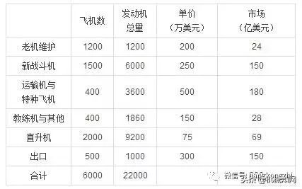 新战斗机发动机单价按高低型别均价计算。新机装备比按1.15、换发次数按1计算。部分数据作归整处理。军机发动机原则上应全部使用国产产品,或至少占比90%以上。