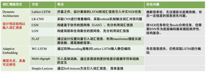词向量&词汇列表:利用一个具备良好分词结果的词向量;亦或者不再利用词向量,仅利用词汇或者实体边界信息,通常可通过图网络提取相关信息。这种增强方式,主要有2大范式: