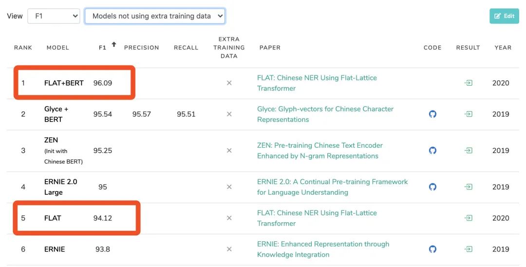 近年来,引入词汇信息逐渐成为提升中文NER指标的重要手段。ACL2020中一篇来自复旦大学邱锡鹏老师团队的 FLAT: Chinese NER Using Flat-Lattice Transformer 刷新了中文NER任务的新SOTA。