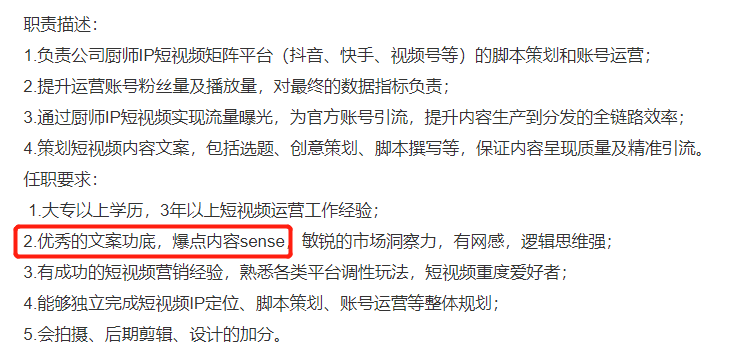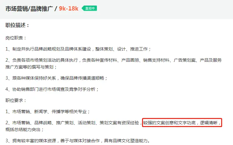 同时,文案技能,也成为了更多企业对不同岗位的技能要求。