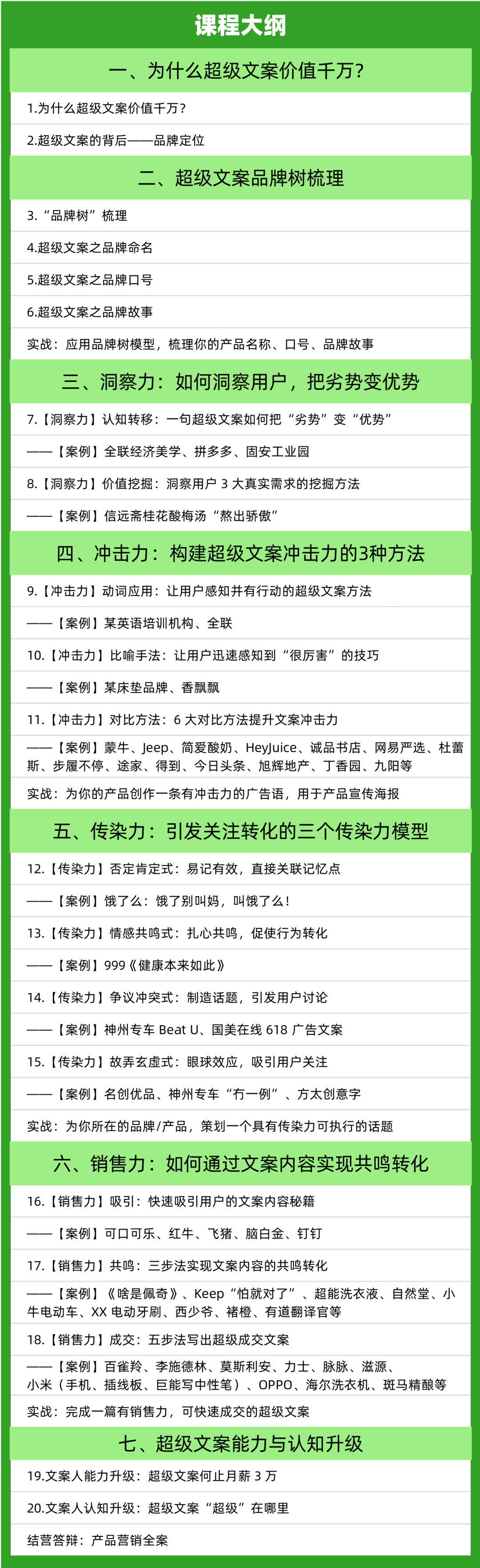 以上,就是这门由20年+年文案经验老司机线上亲授的课程: