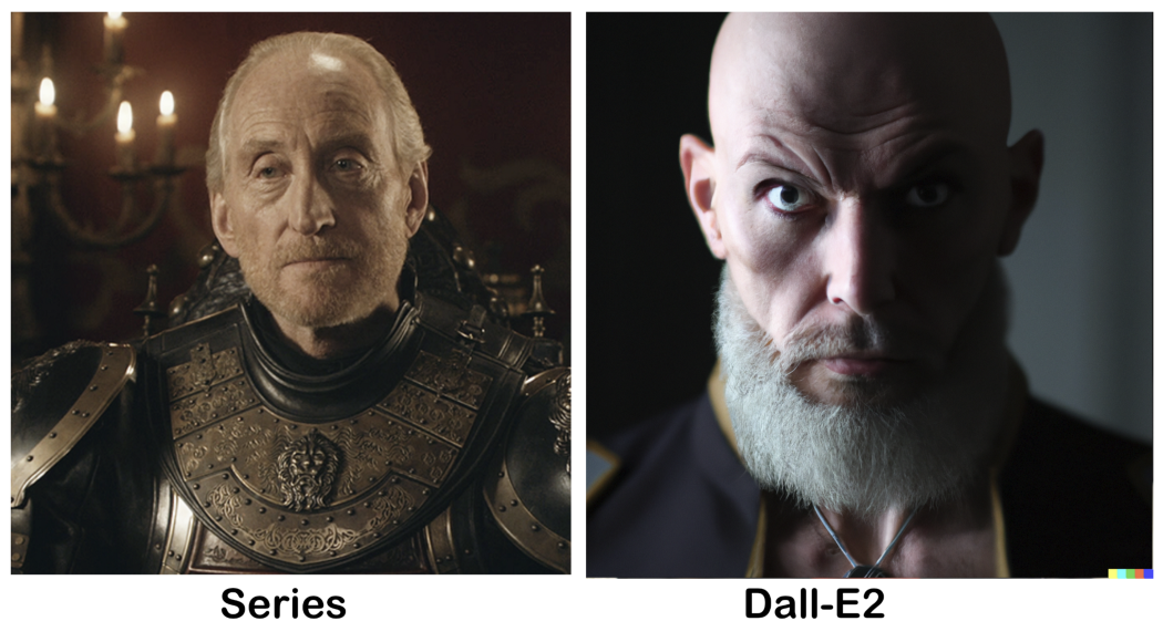 用 DALL·E 2 生成的《冰与火之歌》(被美国 HBO 电视网改编成了电视剧《权力的游戏》)中的各色人物
