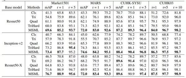 皆可以是正样本对也可以是负样本对。概括而言TriHard损失是针对batch中的每一张图片都挑选了一个三元组,而MSML损失只挑选出最难的一个正样本对和最难的一个负样本对计算损失。所以MSML是比TriHard更难的一种难样本采样,此外