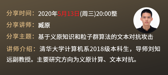摘要:对抗攻击是机器学习领域受到广泛关注的话题。相比于图片、语音等领域,文本对抗攻击面临着搜索难优化、扰动易感知等挑战。在本次分享中,讲者将文本对抗攻击形式化为离散组合优化问题,并引入了一种基于义原知识和粒子群算法的文本对抗攻击方法,以提高文本对抗攻击的效率。