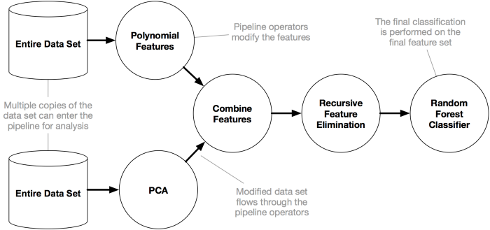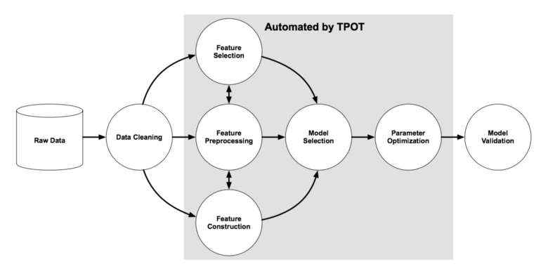 import tpotpipeline_optimizer = tpot.TPOTClassifier(generations=5, #number of iterations to run the trainingpopulation_size=20, #number of individuals to traincv=5) #number of folds in StratifiedKFoldpipeline_optimizer.fit(X_train, y_train) #fit the pipeline optimizer - can take a long timeprint(pipeline_optimizer.score(X_test, y_test)) #print scoring for the pipelinepipeline_optimizer.export('tpot_exported_pipeline.py') #export the pipeline - in Python code!