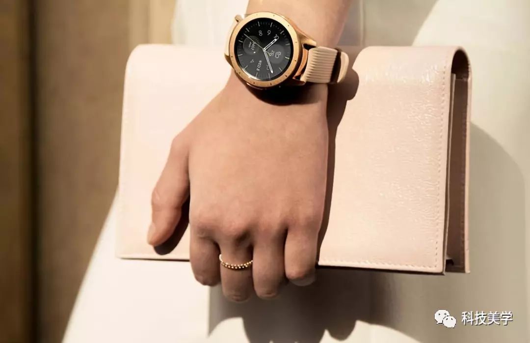 据悉,Galaxy Watch采用了圆形表盘的设计,有三种颜色可选,包括玫瑰金,银色和黑色。