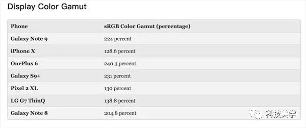 不过,Galaxy Note 9也没有被iPhone X全面碾压,这款手机在屏幕测试方面的表现非常不错,其AMOLED面板的sRGB色域上达到了惊人的224%,远远超过了iPhone X的128.6%。另外,Note 9的屏幕亮度达到了604尼特,高于iPhone X的574尼特。