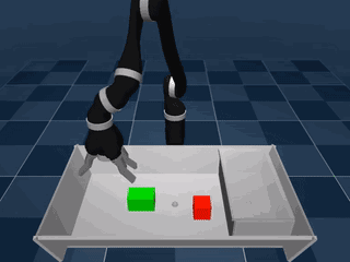 他们在集中模拟的和真实的机器人上演示了SAC-X方法,所用的任务从堆叠物体到打扫操场(把东西放进盒子里)。为这些任务定义辅助任务遵循一个总原则:鼓励智能体探索感应空间,比如激活手指上的触觉传感器、感测手腕上的力、在抱呢提感受传感器中最大化一个关节角度、或者推动它视觉相机传感器中一个物体的运动等。每个任务在目标完成时都能得到一个简单的奖励1,否则是0。