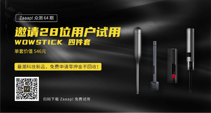 Zaaap! App 这次邀请大家体验的是 WOWSTICK 四件套礼包,内含锂电迷你热熔胶笔、电动螺丝刀 1F+、SD 双动力锂电家居螺丝刀套组、手动螺丝刀套装。扫描上图的二维码或点击[阅读原文],打开 Zaaap! App 申请试用,分享你的体验吧~