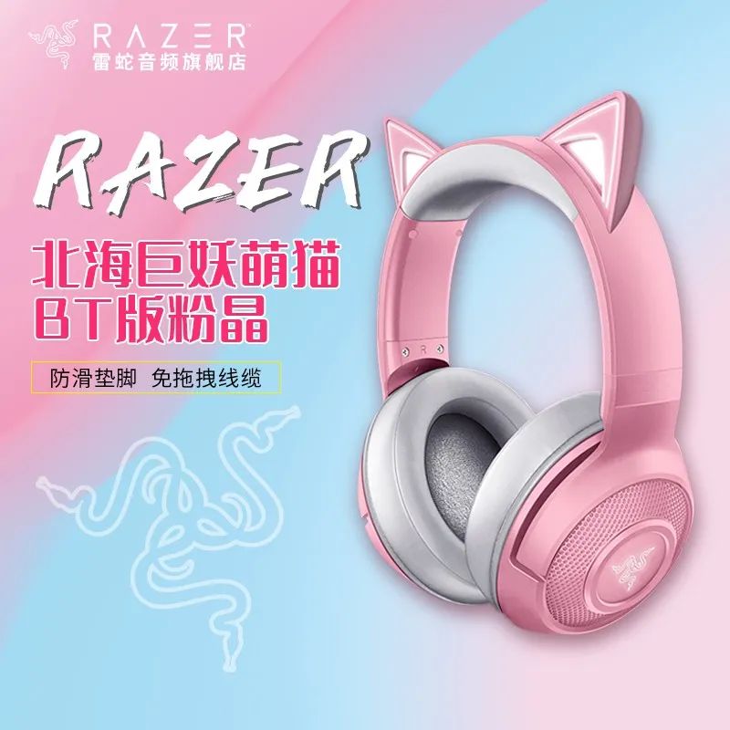 雷蛇(Razer) 北海巨妖 BT 萌猫版同款头戴式蓝牙无线耳机,无线+幻彩灯效非常适合女孩子,买来当圣诞礼物也不错哦!现京东活动价格 699 元!