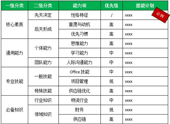 因此,在画出能力树后,我们还需要整理出一张表格,核对自身各种能力的掌握情况,以及后续提能的优先排序和计划。