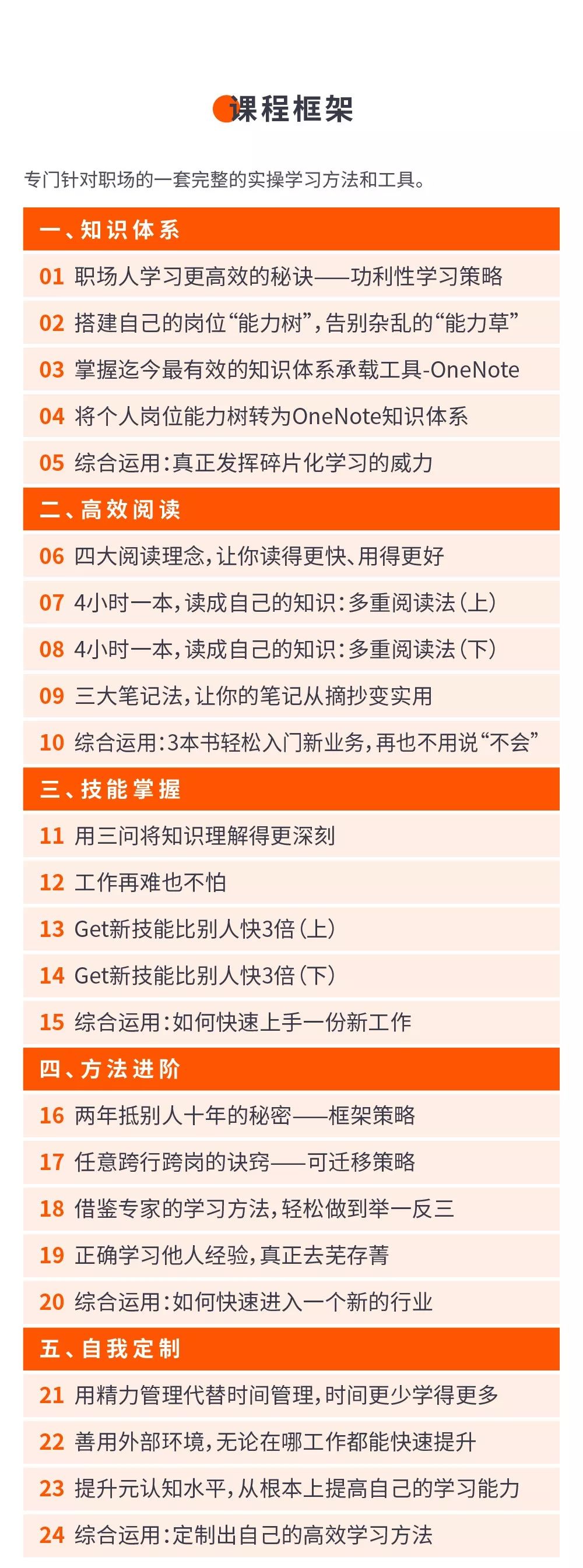 通过小步快跑、快速迭代的策略,最终,以建构学习主义、认知心理学、行为学习主义和自然学习设计为核心,总结出了适用于绝大多数职场人士的3大学习策略、5类学习技巧。