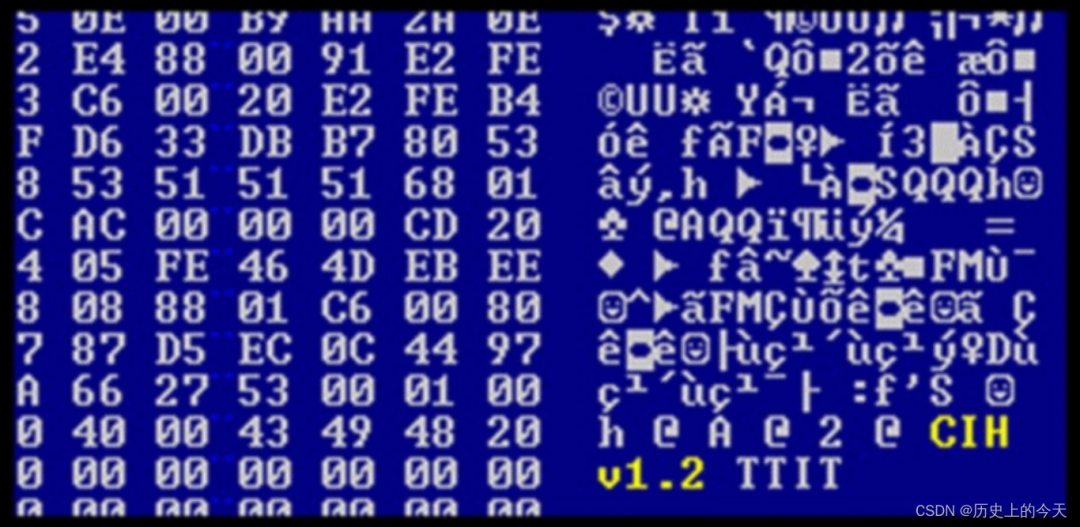 1998 年 9 月,日本山叶公司为感染了该病毒的 CD-R400 驱动提供了一个固件更新。1998 年 10 月,Activision 公司旗下游戏 SiN 的一个演示版本因为在某一用户的主机上接触被感染档而受到感染。这个公司的传染源来自 IBM 于 1999 年 3 月间发售的已感染 CIH 病毒的一组 Aptiva 品牌个人电脑。1999 年 4 月 26 日,在先前的布局完成后,切尔诺贝利病毒(CIH 病毒)首次发作。这是一宗不亚于切尔诺贝利核事故的大灾难,是计算机界的一次“核爆”;全球不计其数的电脑硬盘被垃圾资料覆盖,甚至 BIOS 也被破坏,无法启动。