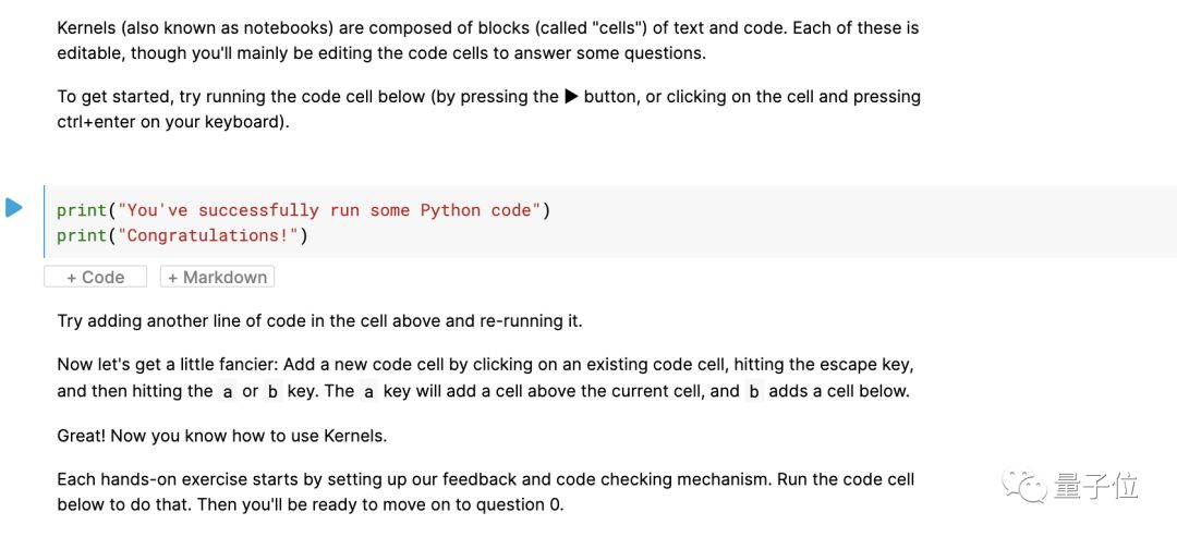 进入练习页面,可以在Kaggle的练习本Kernels直接练习代码。很方便。