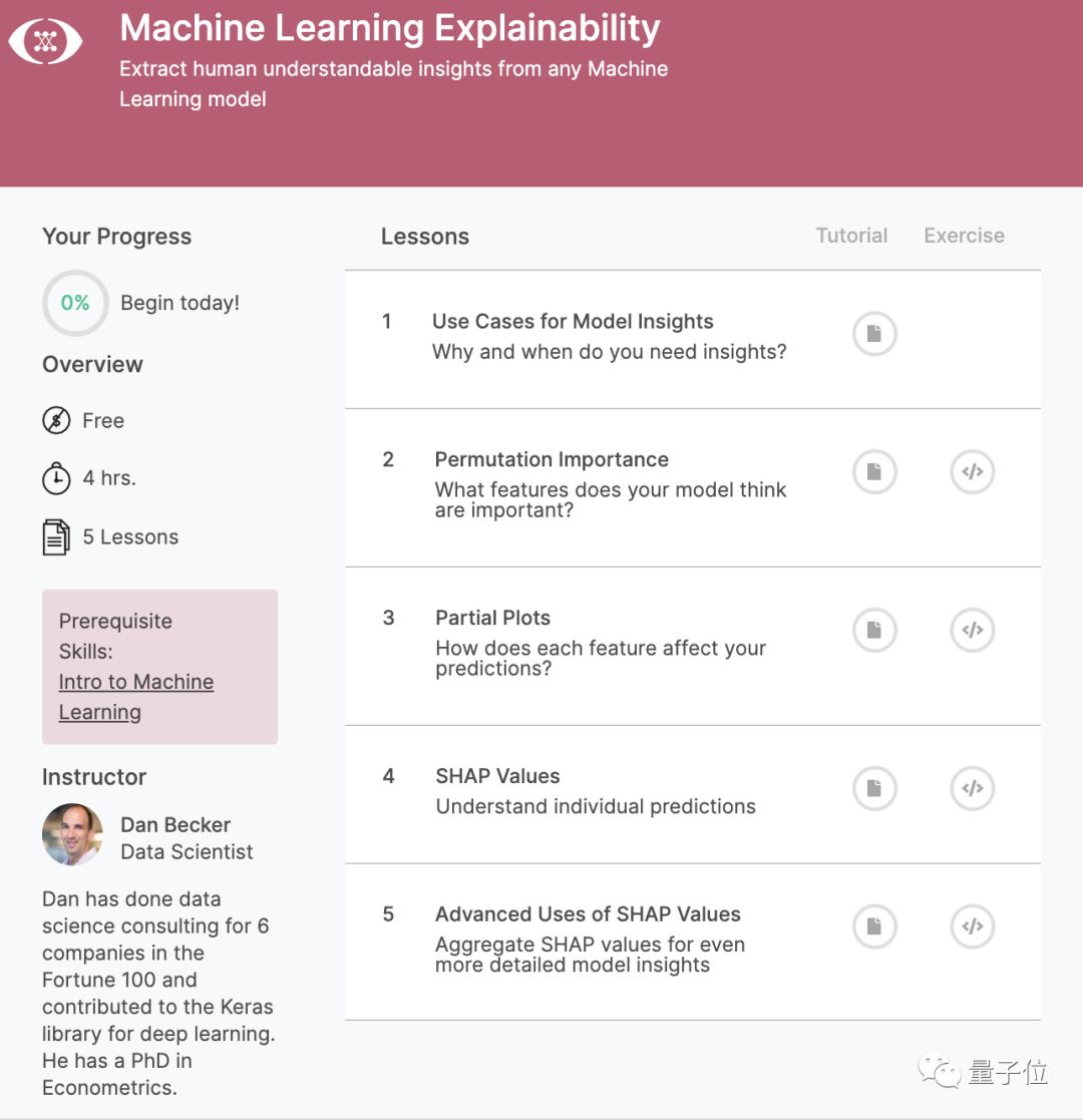 通常机器学习模型被称为“黑匣子”,人类无法理解这些预测背后的逻辑。而这门课程将教你从复杂机器学习模型中解释这些发现: