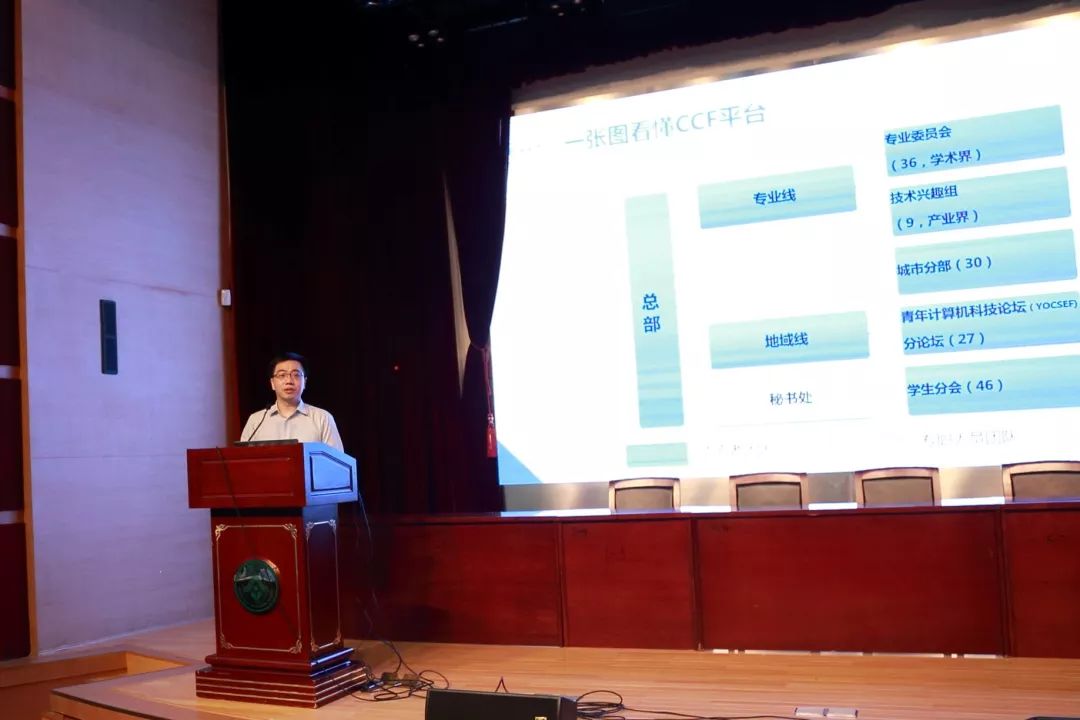 2019年6月2日,CCF华南农业大学学生分会成立大会暨第一次学术报告会在华南农业大学图书馆报告厅成功举行。CCF总部代表、CCF广州主席、华南理工大学研究生院副院长许勇教授,CCF YOCSEF广州主席、华南师范大学计算机学院郝天永教授,广东省信息安全重点实验室主任、中山大学数据科学与计算机学院赖剑煌教授,华南理工大学自动化科学与工程学院副院长俞祝良教授,广东工业大学计算机学院副院长陈平华教授,华南农业大学数学与信息学院院长刘财兴教授、副院长黄琼教授、教师代表黄栋副教授,CCF华南农业大学学生分会执行委员会成员,CCF广东工业大学学生分会代表以及九十余位CCF华南农业大学学生会员代表参加了成立大会。黄栋主持此次成立大会。