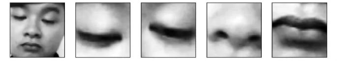 (2)在人脸识别领域,OpenCV提供的通过分区域检测的算法,已成为当前较为典型的人脸算法[31]。本实验参考OpenCV的区域抽取方法,对每个样本的图像,进行多种区域抽取,包括人脸、左眼、右眼、鼻子、嘴巴。这些不同的人脸区域可以代表人脸的整体和局部状态。在实验中,我们将通过深度学习,挖掘各区域与学习参与度之间的潜在联系。局部区域的抽取也有利于深度学习模型进行针对性的处理,从而减少对样本数量的过度依赖。