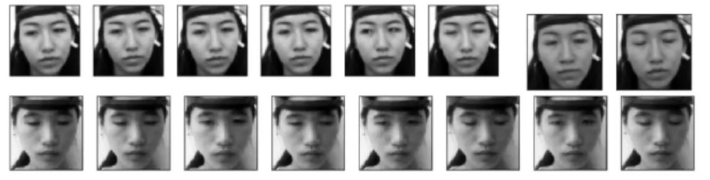 在数据集的标记方面,众包是当前对海量数据进行标签的常用方法。一个典型的案例是Kamath于2016年开发了一个数据集,模拟MOOC环境的实际情况,将采集到的图片发布到网络平台上,使用众包标签进行参与识别[35]。我们也采用了类似众包的方式进行标记,由被试志愿者完成数据集中的所有图片记录的标记,并通过自评和3名他评的4个数据进行一致性人工标记的校验。特征数据的提取与人工标记过程,见图6。
